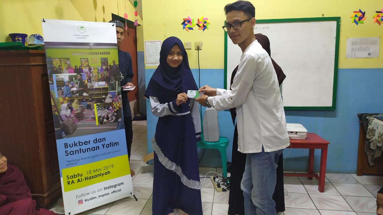 Acara kali ini kami selenggarakan di RA Al Hasaniyah Bekasi yg merupakan salah satu tempat dari Pengurus Yatim Impian. Dalam acara ini anak anak yatim juga kami beri motivasi agar mereka mau untuk mengejar mimpinya.